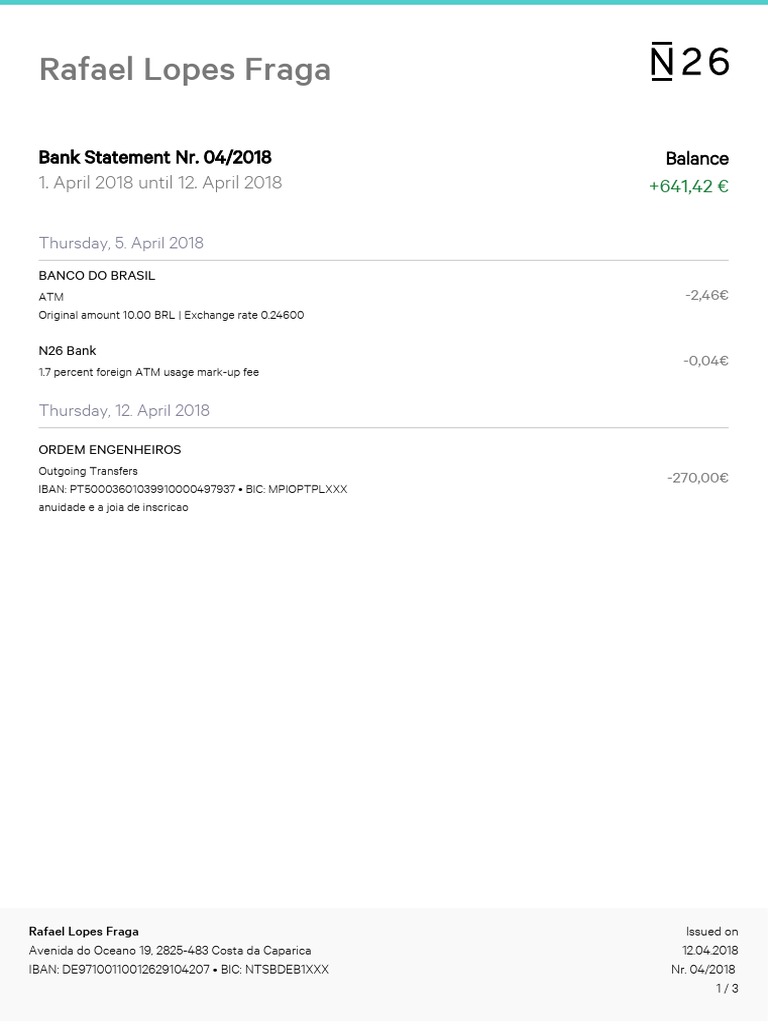 N26 Bank Statement